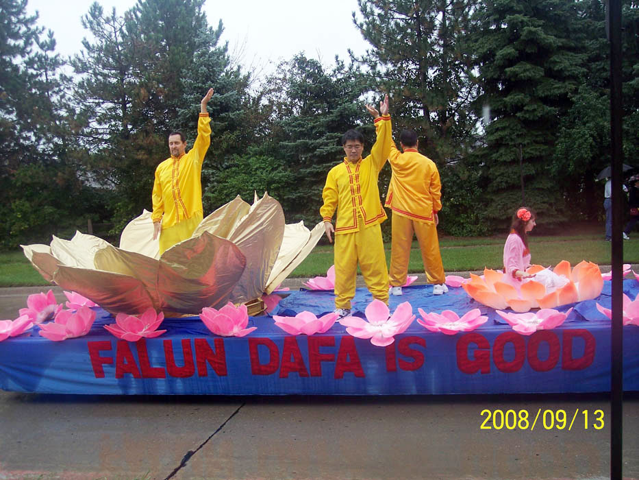 【明慧网二零零八年九月十四日】(明慧记者徐菁底特律报道)二零零八年九月十三日,美国大底特律的法轮功学员们冒雨参加了位于底特律北部特洛伊市(TROY)的社区游行。特洛伊市一直被评为密西根州最安全的城市,优秀的学区环境一直吸引着众多华人家庭居住在这里。