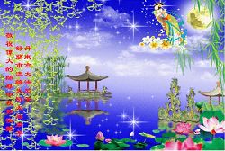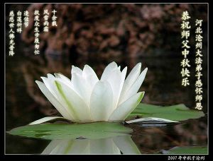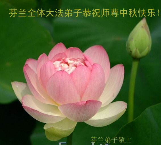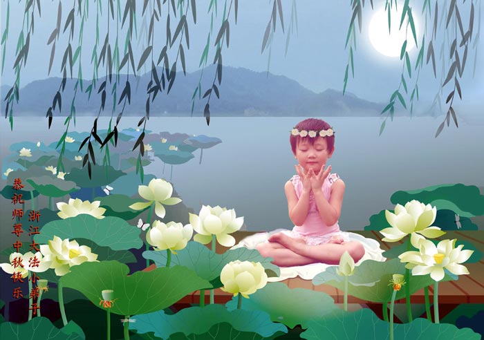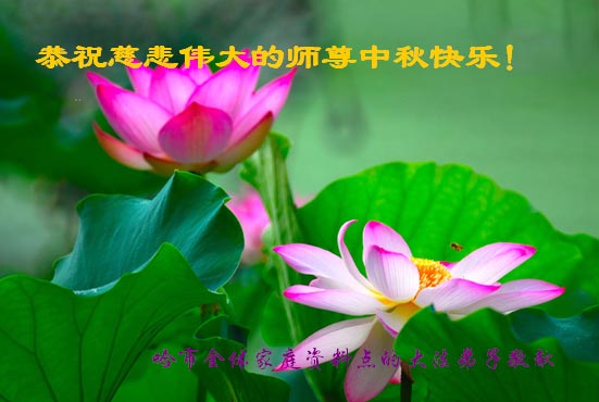 弟子们跟随师尊正法修炼走过了九个年头,请师尊放心,弟子们真的成熟了,弟子会稳健的走好最后的路,在做好三件事中修好自己,才能使更多的众生得救。弟子们唯愿师尊少一份操劳,多一份欣慰!愿中秋那轮明月带去家乡弟子纯真的敬意和问候,大法弟子如同那满湖盛开的青莲带给世人得救的希望。