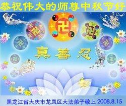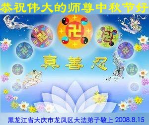值此一年一度的中秋节来临之际,黑龙江省大庆市龙凤区全体大法弟子向师尊问好!并遥祝师尊中秋节快乐!