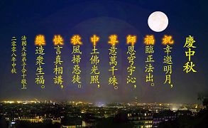 我是一位四川流离失所的大法弟子,99年以来,我在证实法救度众生的风风雨雨中历尽艰辛,被邪恶迫害了长达五年之久,生不如死。在伟大的师父的慈悲呵护下,才终于走到了今天。为了感谢师尊对弟子的慈悲苦度与万分珍惜,弟子特在这中秋来临之际,为了表达弟子对师尊的无限感恩,特写下宋词献给慈悲伟大的师尊:祝师父中秋快乐!