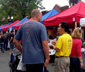 一位西人妇女喜见法轮功展位,隔着马路,迫不及待的大叫,“法轮功正是我所要的!”她立即横过街,前来索取介绍法轮功的传单。她表示将到大法网站进一步了解这个功法。