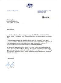 澳大利亚政府长期以来一直关心法轮功在中国所受到的遭遇。虽然本政府对法轮功理念和修行不持有立场,但认定中国禁止法轮功以及其对待修炼者的方式违反了基本国际人权准则。