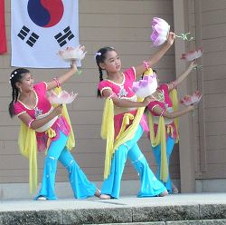 ![]() 明慧学校舞蹈队的小朋友表演“插莲花” |