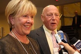 ![]() 卡里登(Caledon)市长MAROLYN MORRISON(左)与先生一起观看了演出 |