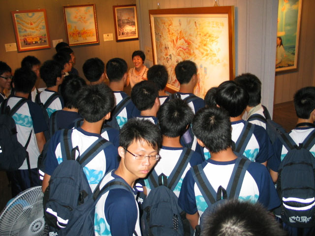 同是任教屏中美术班的张老师,跟蔡主任的情况雷同,经过蔡主任的推荐后,她拄着拐杖仔细的聆听导览,心中很多的疑惑豁然开朗。她终于明白为什么法轮功学员总是人手一册,好学不倦。她说:“我回去得要好好看《转法轮》了。”