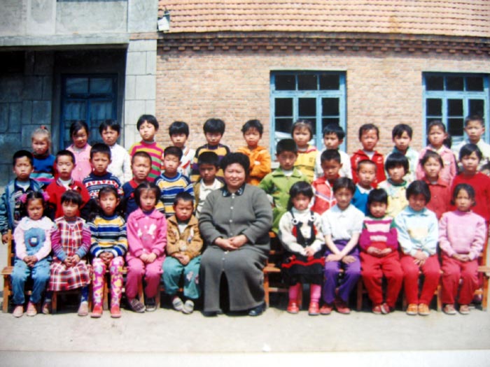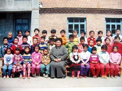 ![]() 施桂英生前和安乐小学的孩子们合影 |