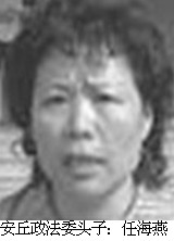 2、任海燕(安丘市恶党政法委书记),女,积极镇压法轮功学员,零八年三次被追查。