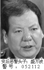9、盛万波,男,一九五九年九月生,寿光人,警号052112,二零零七年一月任安丘恶警头子至今七次被追查,其中零八年六次,宅0536-5228226、手机13806362866