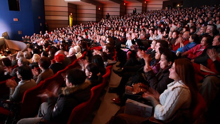 ![]() 张昭女士和先生John Murphy一同观赏美国神韵纽约艺术团在多伦多会展中心剧院的演出 |