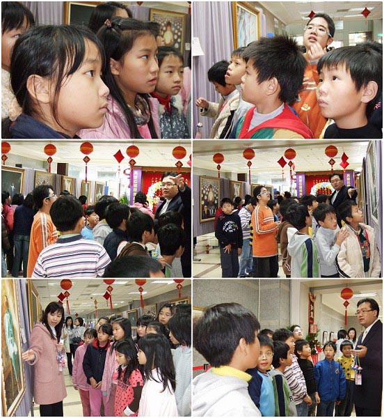 十一日下午1点,位于桃园县平镇市的北势国小五年级三十一位同学,在二位老师带领下参观了美展,同学们表示对《佛像》雕塑的画作印象很深刻,有种很神圣的感觉,并且觉的佛像眼睛好象在看着他们。