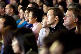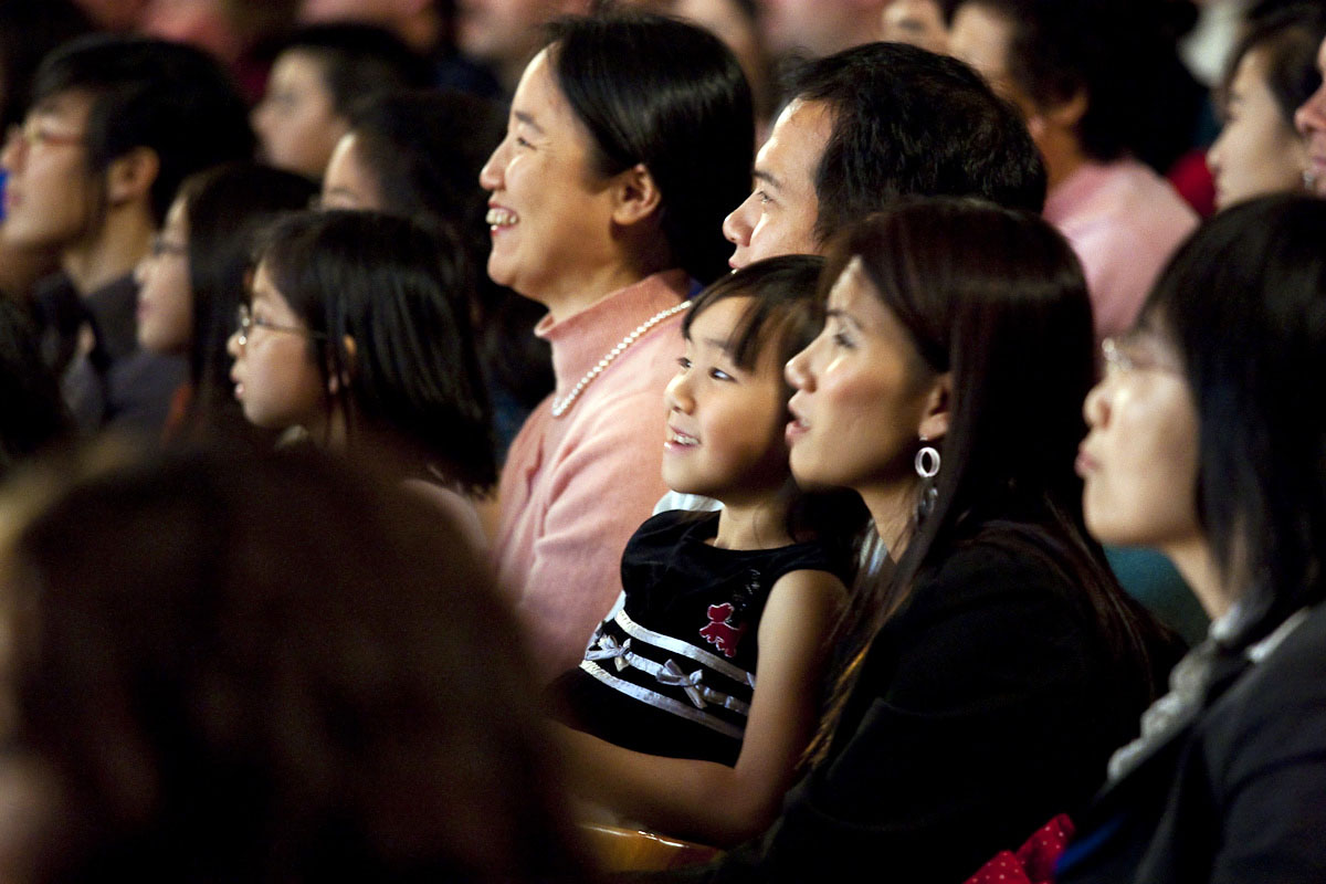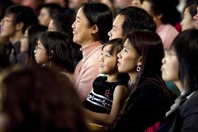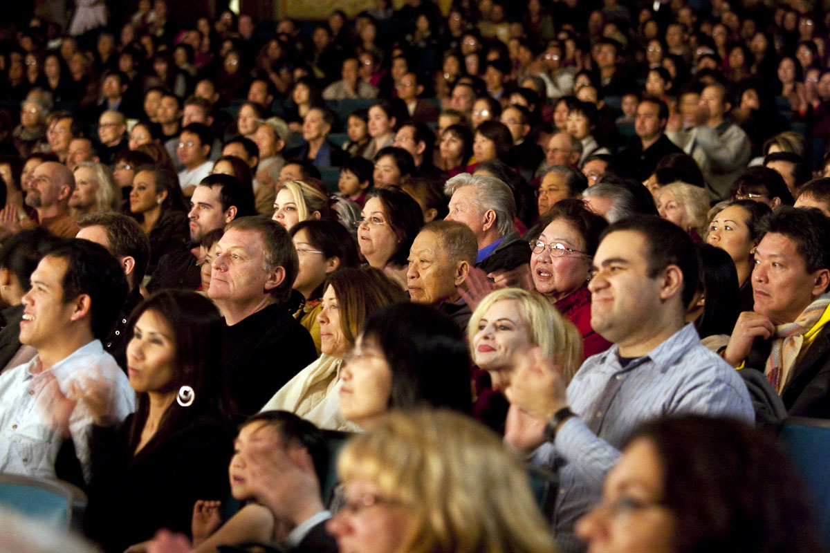 二零零九年一月一日晚八点,神韵国际艺术团在洛杉矶的第三场演出。从中国大陆来美定居的李先生夫妇和刘先生夫妇,都不约而同的特意带着他们的孩子来观看神韵演出。