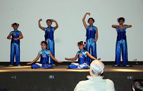 中午十二点,在大西洋城公众图书馆礼堂,大费城明慧学校舞蹈队的孩子们为早已等候在那里的观众们表演了精心排练的舞蹈和法轮功五套功法。当明慧舞蹈队的法轮大法小弟子们演示功法时,全场一片宁静,连看演出的小孩子们都静了下来,专注的看功法演示,演示结束了,观众似乎还沉浸在祥和宁静中,随后报以热烈的掌声,当主持人问观众看了法轮功五套功法演示有何感觉时,许多观众赞叹道:好祥和!最后一个舞蹈,腰鼓“法轮大法好”表演完,台下观众热烈鼓掌,纷纷叫好。