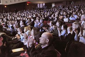 ![]() 神韵巡回艺术团在纽约韦斯特切斯特演出,观众凝神欣赏 |