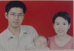 ![]() 大法弟子赖伯锐、刘玉红夫妇和女儿(现已四岁) |