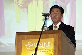 ![]() 神韵晚会协办单位新!唐!人:电视台洛杉矶分台台长Frank Tsai在贵宾会上发言 |