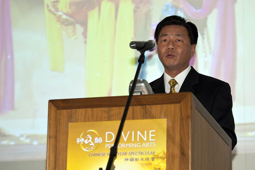 演出主办单位美西法轮大法研究会负责人李有甫致辞感谢嘉宾们的光临。他表示,艺术作为文化的一部份,会影响到人们对优美、关爱、殊胜、希望等的认知与理解。神韵通过中华五千年神传文化、古老历史和纯善纯美的艺术,唤醒人们的善念和良知,启迪人们找回生命与心灵中常被遗忘的宝贵价值。神韵巡回演出越多,受益的人越广。李有甫期盼与各界通力合作,通过神韵的演出,为人类未来的美好作更多的奉献。