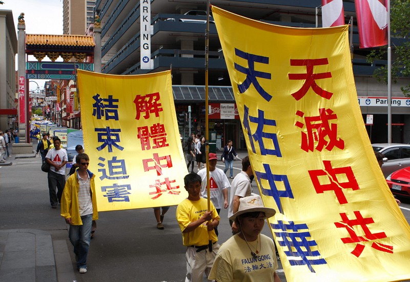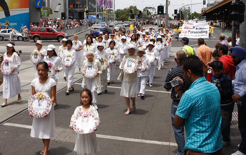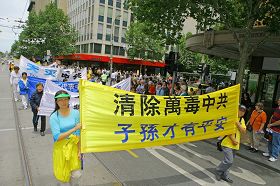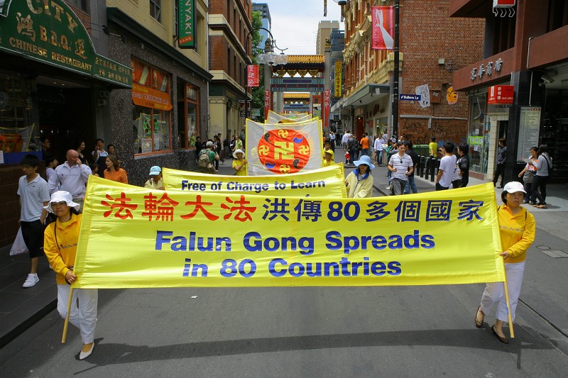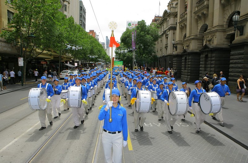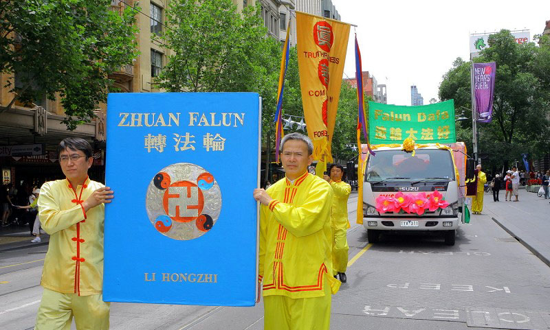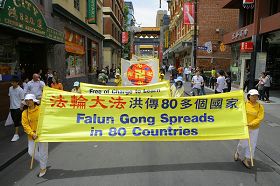 【明慧网二零零九年一月四日】二零零九年新年伊始,来自澳洲各地的部份法轮功学员近千人齐聚人文之都墨尔本,于一月三日星期六的午后,在市中心的繁华商业街举行了大游行。这是澳洲年度大法弟子心得交流前夕举行的活动,令人瞩目。