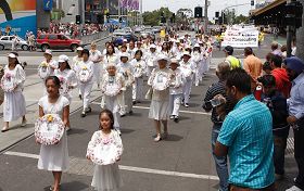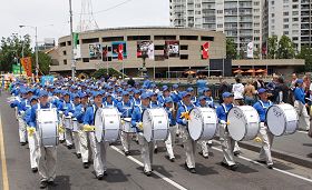 走在游行队伍最前列的是天国乐团,来自悉尼、墨尔本两地团员的加盟,使乐团人数超过百人,威武雄壮的乐声威震四方,人们纷纷驻足观看,随着一幅幅「画卷」的展开,似乎不舍离开,直到游行队伍最后的腰鼓表演中欢快的鼓点从耳边消失。