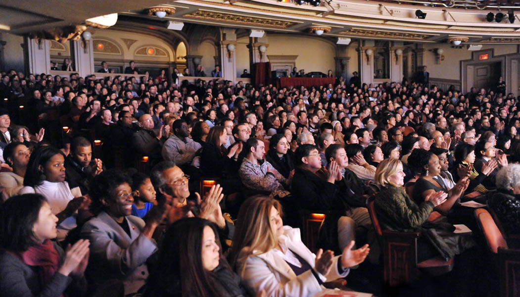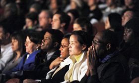 ![]() 纽约观众在布鲁克林观看神韵晚会 |
