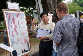 当地华裔市民张奕宝看了美展后觉得共产党迫害的手段很恐怖,很没有人性。他认为法轮功是一个很正义的功法,希望支持法轮功的人要坚持,要加油。