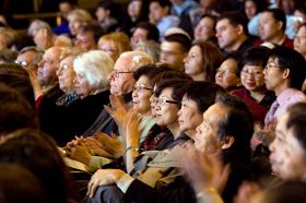 【明慧网二零零九年十月十二日】(明慧记者章韵多伦多综合报道)二零零九年十月十一日下午,美国神韵纽约艺术团在多伦多的第四场演出在佳能剧院(Canon Theatre)圆满落下帷幕。演出中的庄严神圣场面,展现出的悠久辉煌的中国历史……令现场观众发出由衷的赞叹。