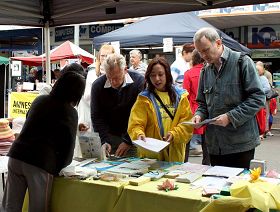 ![]() 法轮功学员在春季多元文化节庆祝活动上(LANE COVE VILLAGE FAIR),向当地民众介绍法轮功真相。 |