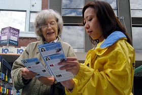 生意人基特.彼得(Kit Peters )倾听法轮功学员的叙述后感到很震惊,他表示,这样的罪行一定要被制止,“我非常想帮助你们共同制止这种惨无人道的迫害,它不应该一再继续下去。”最后他在征签表上签名支持制止迫害,并向法轮功学员要了一些真相传单,说要向他的朋友介绍今天自己的所见所闻,他还希望法轮功学员以后常常给他提供最新消息。