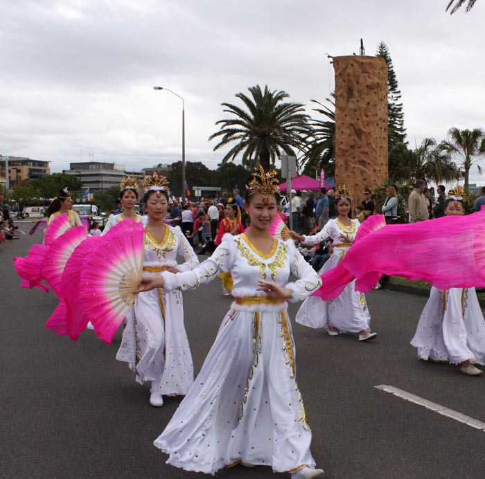 Mattara节委员会在巡游路线上分多个地段重复介绍各个团体。当法轮功学员的方阵出现时,主办方首先代表当地民众感谢来自悉尼(Sydney)的法轮功团体,并向人们介绍法轮功是古老而久远的传统中国文化,修炼“真善忍”的同时结合五套功法炼习。