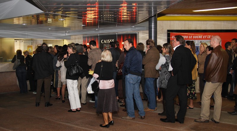 ![]() 为神韵演出慕名而来的瑞士观众在演出开始前,为能够有机会买到门票在剧场售票窗口前排起了长队 |