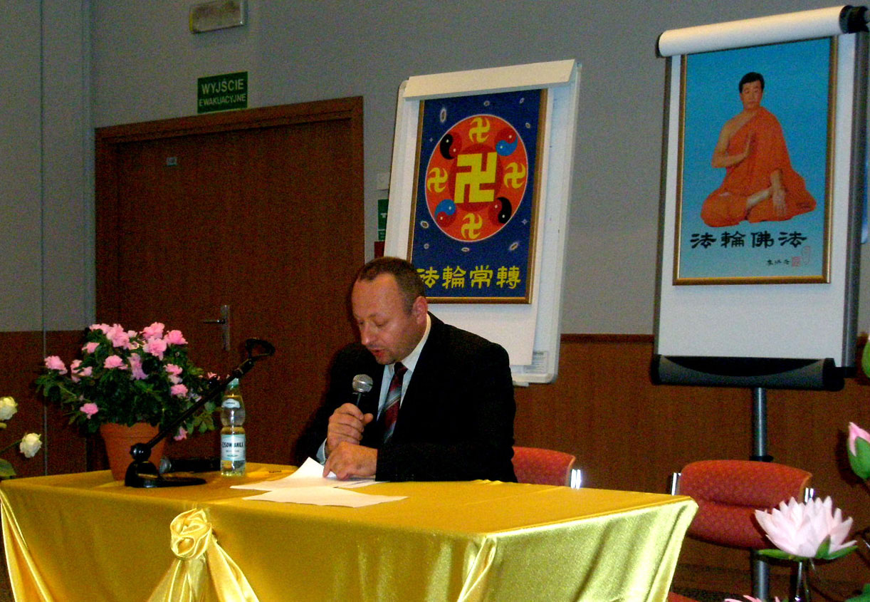 此次法会的前一天,来自波兰各地大法弟子分别在华沙郊区的中国贸易城、和老城洪法、讲真相;傍晚五点,学员又来到华沙中使馆门前抗议,呼吁制止迫害法轮功。