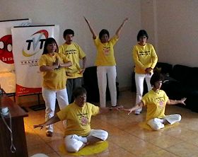 ![]() 学员拜访当地媒体、讲真相、集体炼功。 |