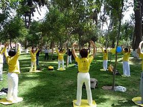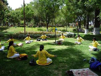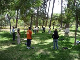 在阿雷基帕“快乐的大森林”公园(Parque Selva Alegre)内,设有法轮大法炼功点,多以新学员为主,本地的学员非常高兴地与利马来的老学员一起切磋学法炼功的心得体会。十八日,星期天,前来学炼法轮功者达二十多位。当炼功结束后,天上出现了一个彩色大光圈,美丽极了。