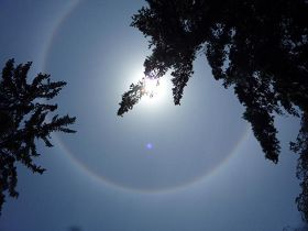 ![]() 当炼功结束后,天上出现了一个彩色大光圈,美丽极了。 |