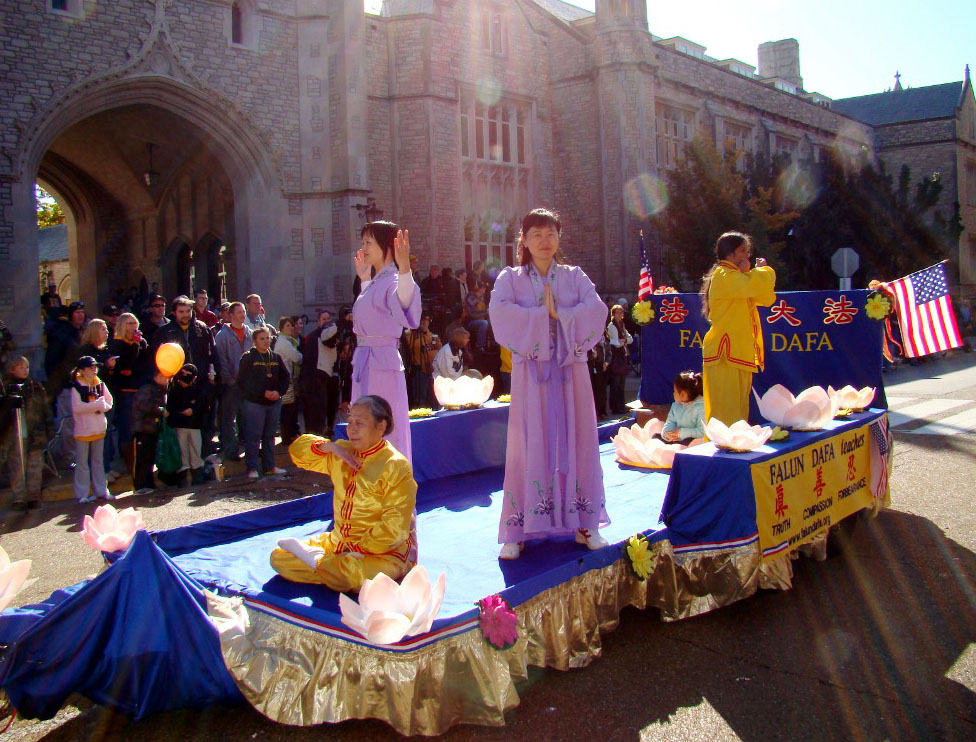 有的美国人,被舒展而优雅的功法所感染,对中国传统文化的打坐修炼心生向往,表示想学法轮功。当法轮功队伍路过主席台时,主持人通过广播告诉人们,法轮功是以真善忍为原则的中国打坐修炼,使精神得到升华,身体得到健康,在世界范围内广受欢迎。