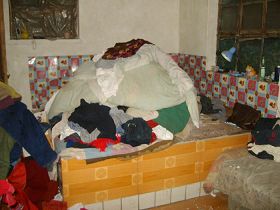 二零零九年九月十七日下午五点多,一群涞水镇派出所男女警察截住刚要外出的夏洪蕊的母亲,强迫她打开院门,进屋非法抄家,翻了个底朝天,衣柜里的衣物被扔了出来,物品散落满地,大法书籍被抢劫。这种场面,警察在夏洪蕊家不知上演了多少次。