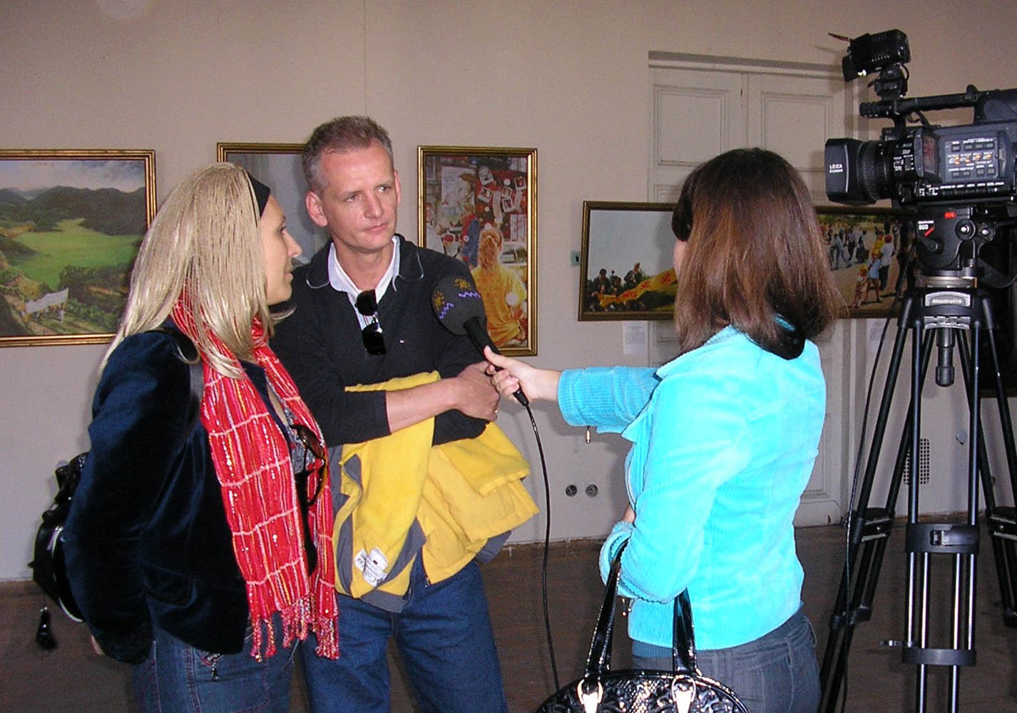 ![]() 当地电视台“黑海”采访真善忍国际美展 |