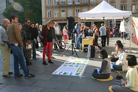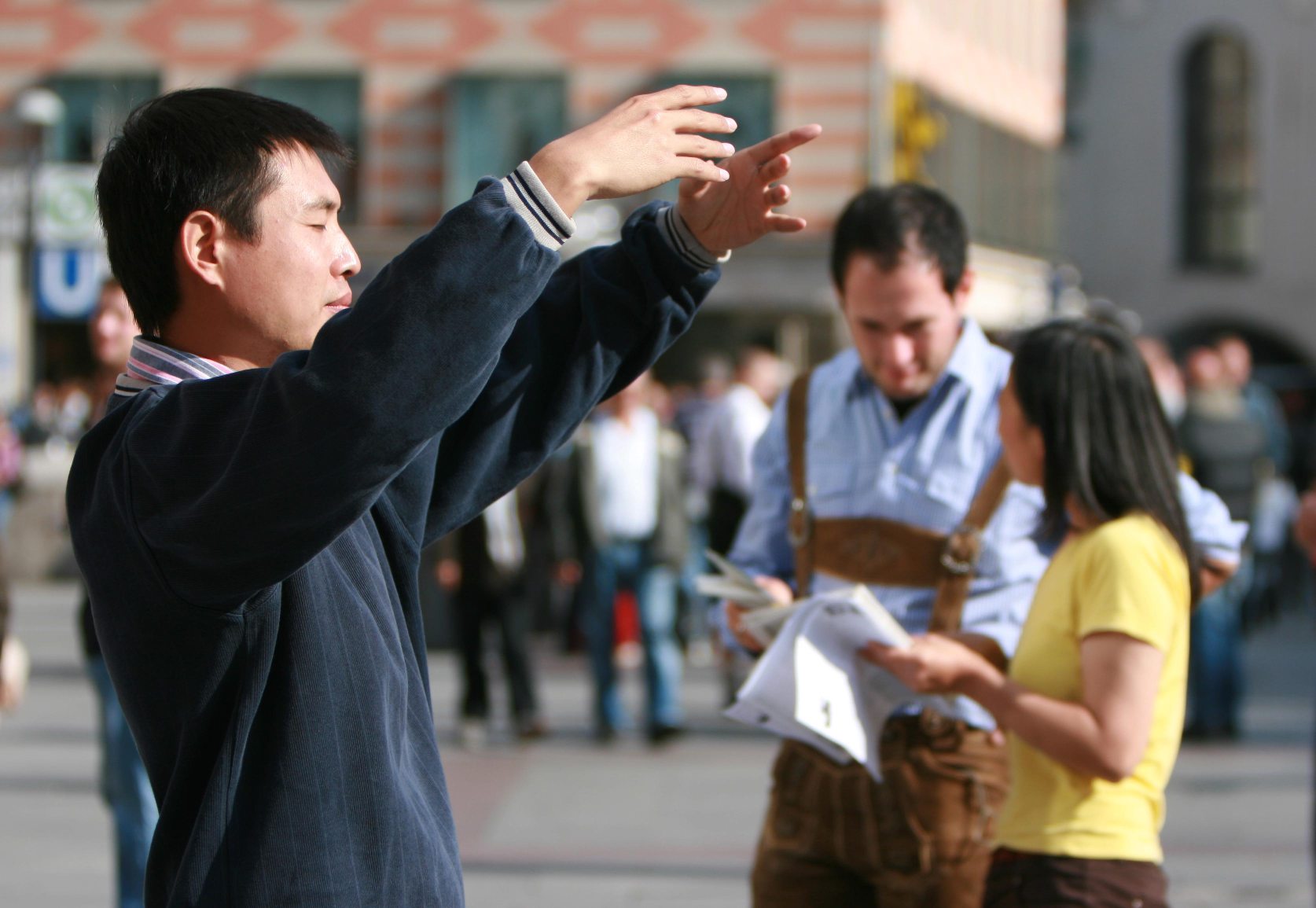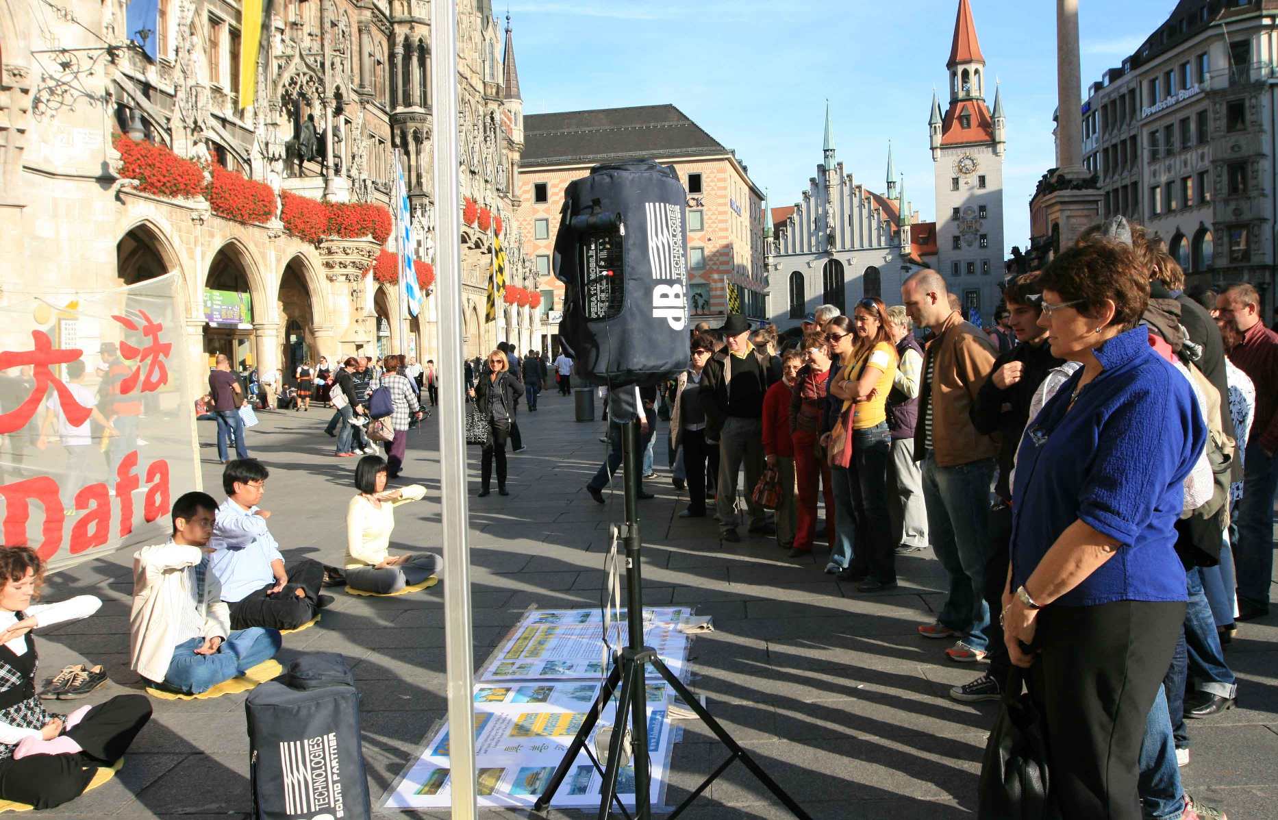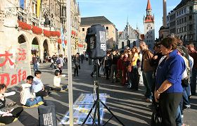 ![]() 法轮功学员在慕尼黑玛琳广场演示功法,揭露中共迫害法轮功的罪行 |