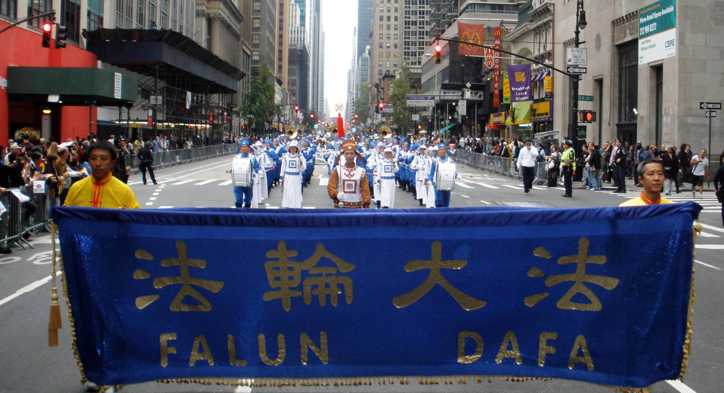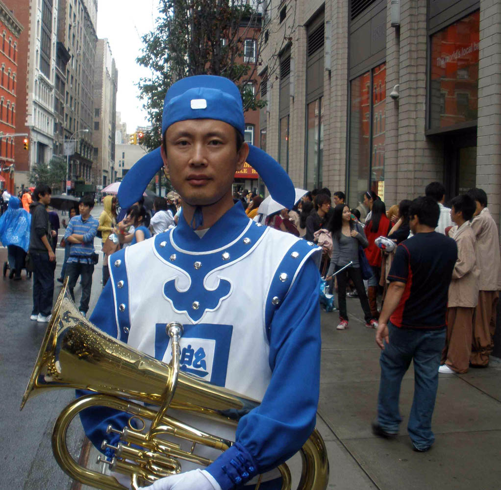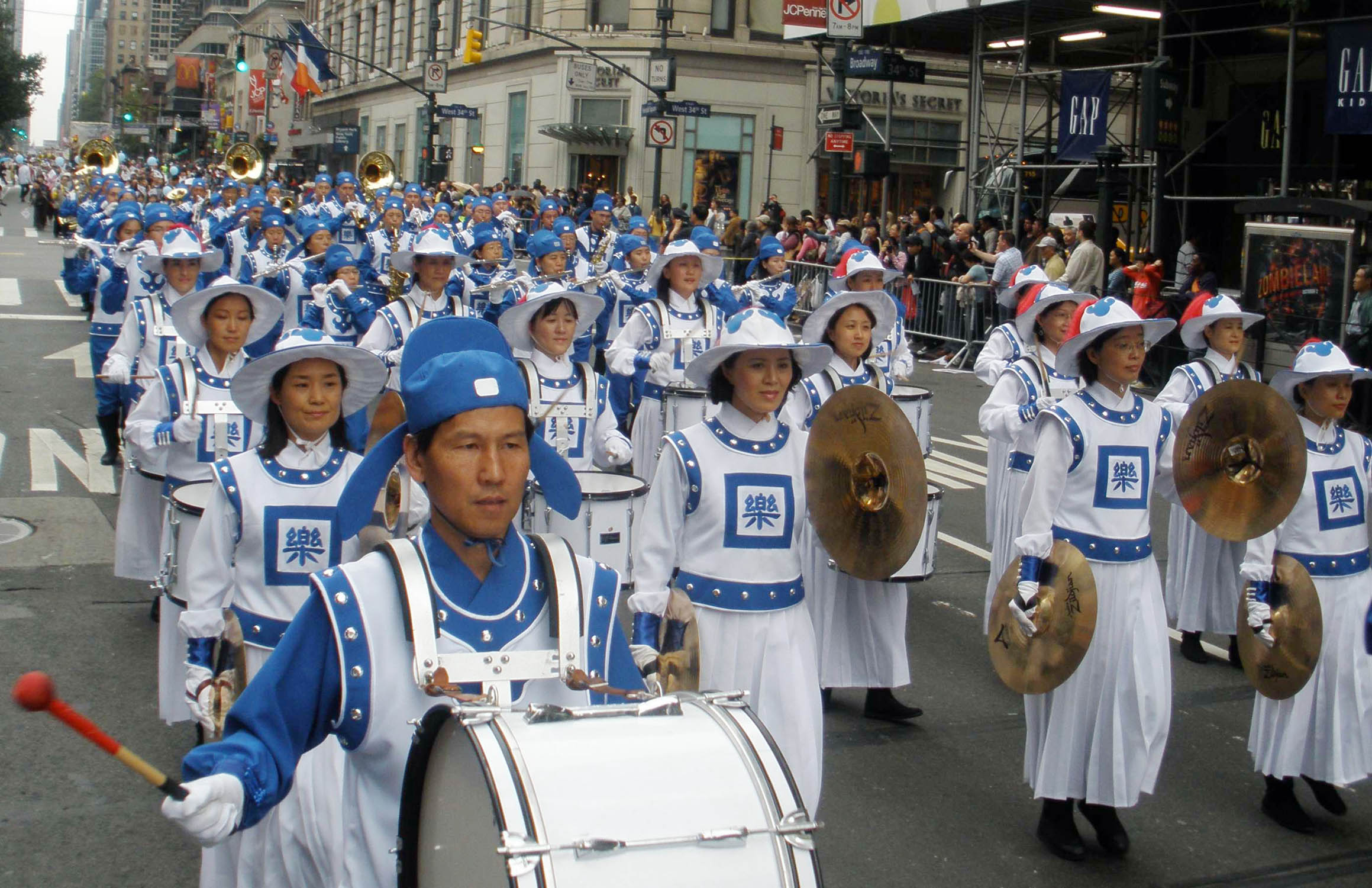 ![]() 行进中演奏《法轮大法好》等曲目 |