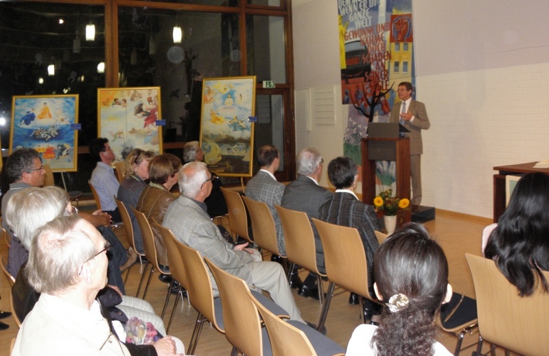 人权艺术协会Ars Honesta(协会名,拉丁语,意思为高尚的艺术)主席沃尔克•迪茨(Volker Dietz)在美展开幕词中指出,这个展览就是清晰地表达了那些承受苦难者的心声,他说:“数以百万计的法轮功修炼者因为不愿违背自己的良心而遭受迫害,参加画展的这些艺术家是他们当中的一员。”