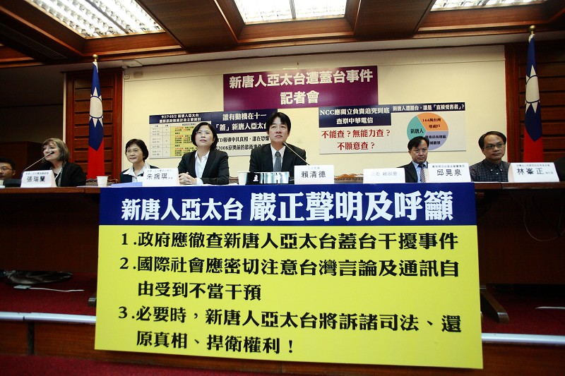![]() 二零零九年十月五日,由赖清德立法委员在台湾立法院召开主题为“台湾卫星通讯安全不保?新!唐!人:亚太台遭到任意盖台十五天!”的记者会。 |