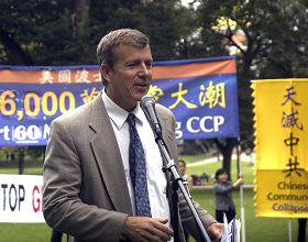 约翰伯奇协会(John Birch Society)大波士顿地区主任薛德烈夫先生(Harold Shurtleff)在发言中说,美国的民选政府不应该支持中共极权统治,为其六十年来的种族灭绝与迫害罪行背书。他说,在美国这片标榜自由的土地上,他觉得有义务揭露中共的邪恶。他希望美国的政府能彻底认清中共本质,不要被商业利益所左右。