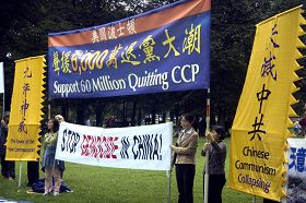 活动主办单位波士顿退!党!服务中心的周女士介绍,自二零零四年十一月《·九·评*共产党》发表,五年时间里,波士顿退!党!服务中心通过在中国城摆退!党!摊位,以及打电话给大陆民众等方式,已为许多海内外华人办理了退出中共党、团、队的手续。
