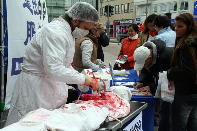 ![]() 德国民众签名抗议中共强行活体摘取法轮功学员器官 |