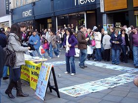 ![]() 法轮功学员在市中心介绍法轮功真相 |