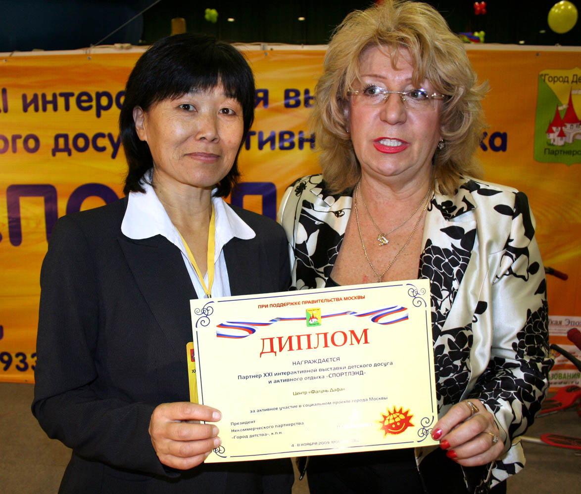 ![]() 莫斯科法轮大法学会代表接受“儿童体育王国”颁发给法轮大法的奖状 |