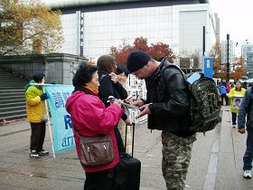 法轮功学员马先生说,今天在这里征签使许多民众了解了真相,他们签了名,支持了我们,同时也是给他们自己摆放了将来的位置。他说,善良的加拿大人经常表示不理解,中共为什么要迫害一个修炼群体?“我告诉了他们中共邪恶的本质,对中国人民残害的历史,法轮功讲真、善、忍,他们就表示明白了。”