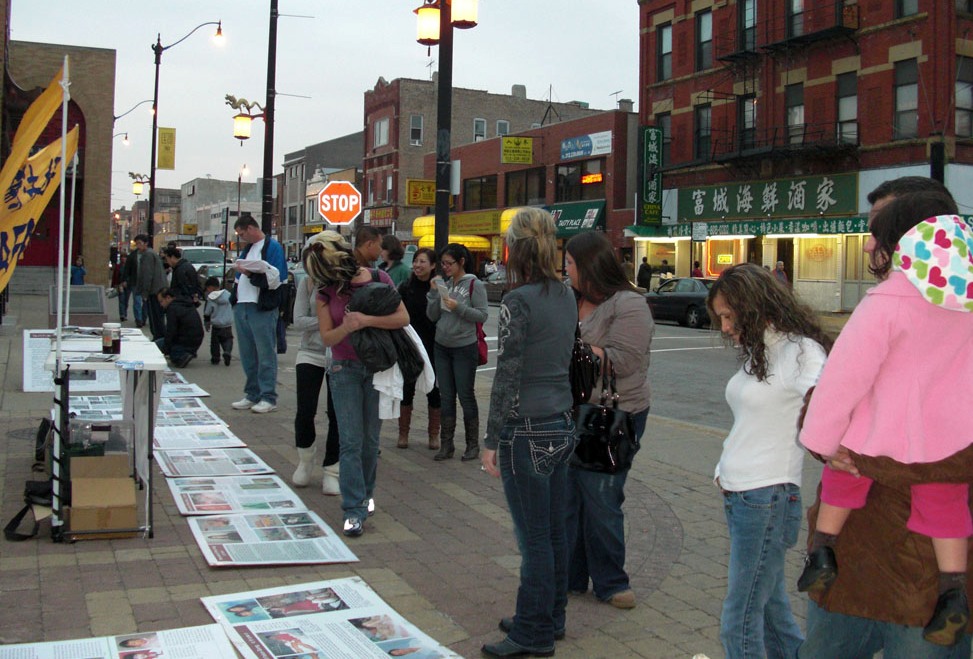 ![]() 芝加哥中国城,路人驻足了解法轮功真相。 |