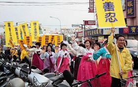 筹办此次游行的学员许先生指出,因参与游行的人数众多,为使当地民众更多地了解声援退!党!游行的讯息,于是游行队伍兵分两路,几乎将整个大里地区的热闹街道都走遍了。