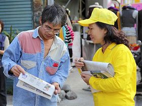 多位在游行队伍旁派发活动资料的法轮功学员提到,台湾的民众都很善良,有些人已经知道法轮功无辜被中共迫害的事实,大家都很肯定这种游行活动。学员许女士提到她今天遇到的一位男士,大约三十多岁,开始时对法轮功颇有误解。许女士告诉他法轮功遭受到中共打压的原因及情形,以及中共活摘法轮功学员器官贩售的残酷事实,这位男子恍然大悟说:“我错了!”许女士为这位明白真相的男子感到高兴。