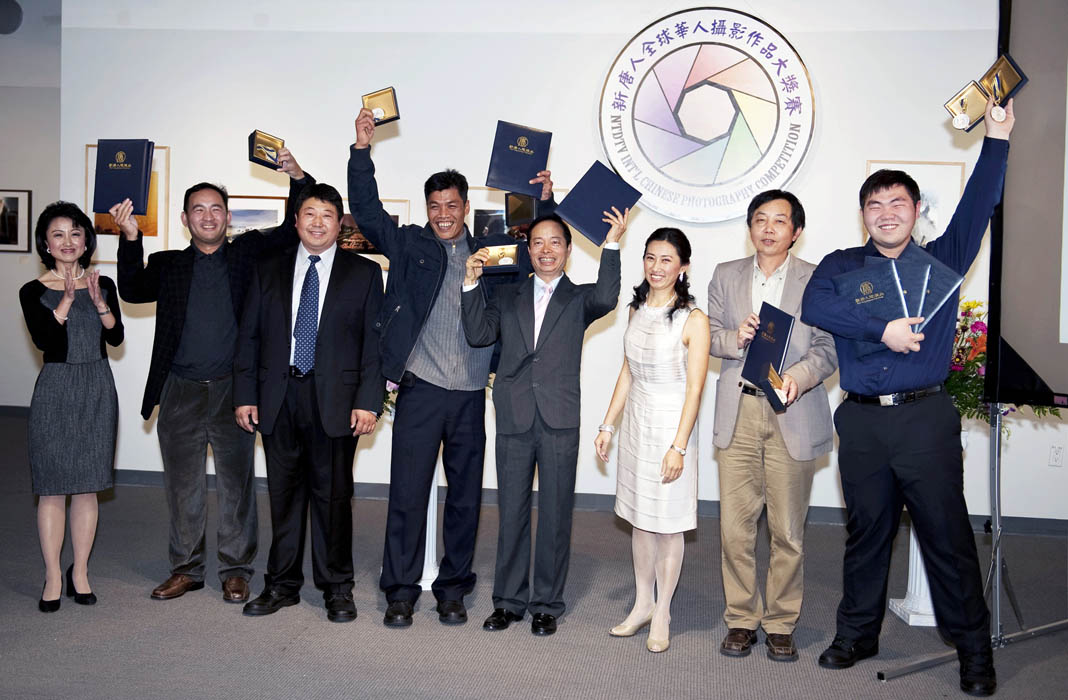 ![]() 第二届新!唐!人:“全球华人摄影作品大奖赛”颁奖典礼现场。(左起)摄影大奖赛负责人李欣、风光自然组铜奖获得者陈国志、评委主席戴兵、风光自然组银奖获得者林章权、风光自然组银奖获得者王满荣、新!唐!人:九大赛主席马丽娟、新闻纪实组银奖获得者董昕、新闻纪实组银奖获得者Edward Dai。 |